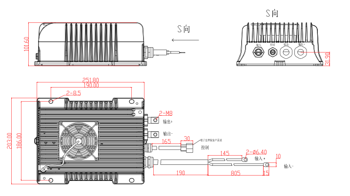 產品尺寸:251(長)x203(寬)x101.6(高)(自然冷)