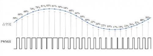 脈沖寬度調(diào)制(PWM)是一種對(duì)模擬信號(hào)進(jìn)行數(shù)字編碼的方法。通過(guò)高分辨率計(jì)數(shù)器的使用,方波的占空比被調(diào)制用來(lái)對(duì)一個(gè)具體模擬信號(hào)進(jìn)行編碼。PWM信號(hào)仍然是數(shù)字的,因?yàn)樵诮o定的任何時(shí)刻,滿幅值的直流供電要么完全有(ON),要么完全無(wú)(OFF)。電壓或電流是以一種通(ON)或斷(OFF)的重復(fù)脈沖序列被加到模擬負(fù)載上去。通的時(shí)候即是直流供電被加到負(fù)載上的時(shí)候,斷的時(shí)候即是供電被斷開(kāi)的時(shí)候。只要帶寬足夠,任何模擬值都可以使用PWM進(jìn)行編碼。而占空比就是高電平持續(xù)時(shí)間與整個(gè)周期時(shí)間的比值,占空比越大,高電平持續(xù)的時(shí)間越長(zhǎng),模擬電路開(kāi)通的時(shí)間就越長(zhǎng),如圖1所示。