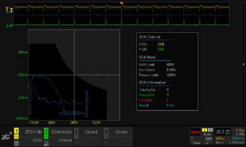 開(kāi)關(guān)器件的安全工作區(qū)是一項(xiàng)非常重要的參數(shù),通過(guò)示波器的SOA分析功能,可以快速有效的確定器件的工作是否安全,確保產(chǎn)品安全可靠。