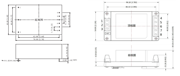 | 安裝尺寸及管腳定義: | |||||||||||||